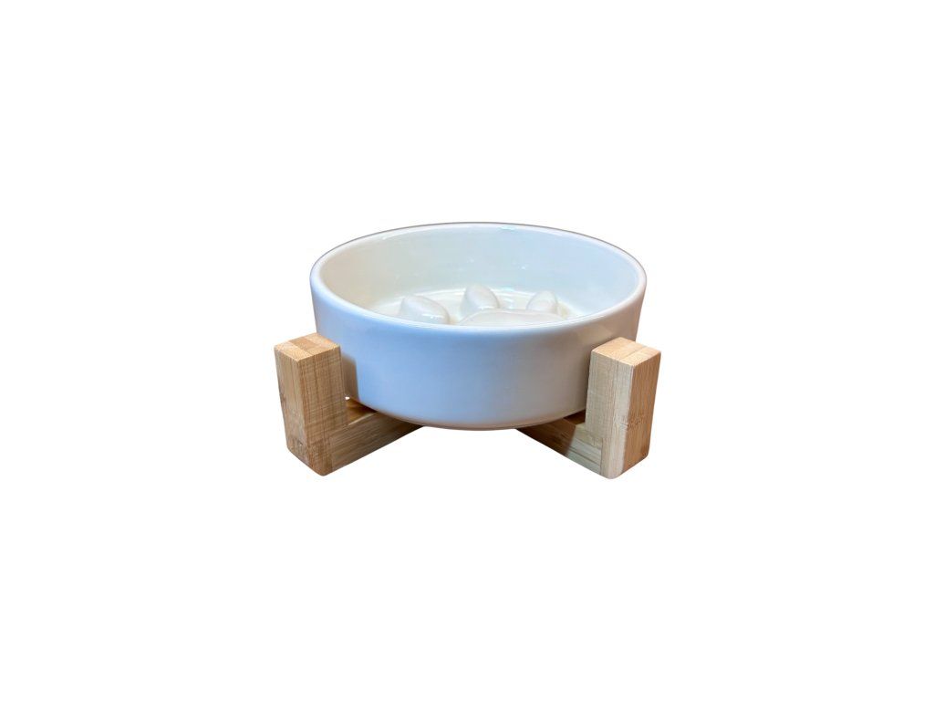 Keramické provedení zajišťuje vysokou hygienu – miska se snadno myje, neabsorbuje pachy a nepohlcuje bakterie. Dřevěný podstavec zabraňuje klouzání po podlaze a zvedá misku lehce nad zem, což napomáhá zdravému držení těla při jídle.