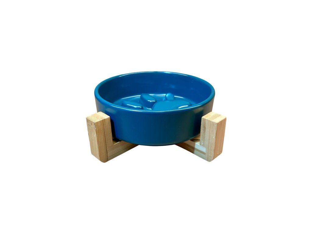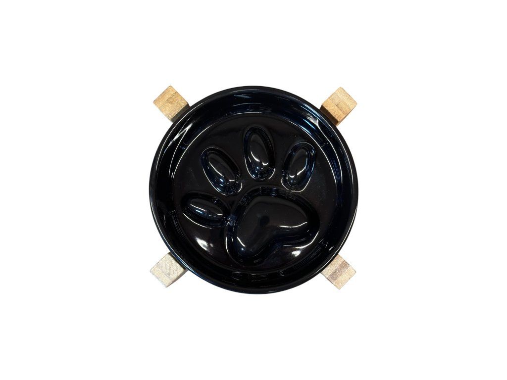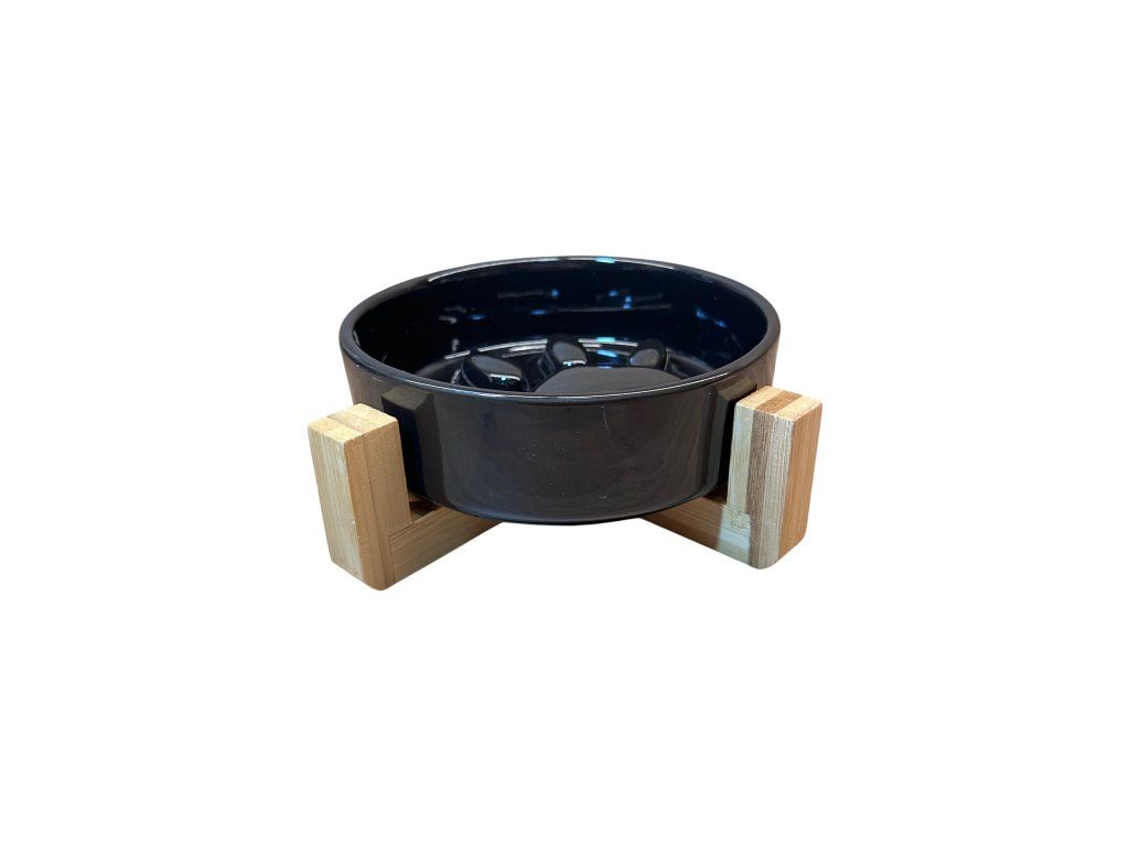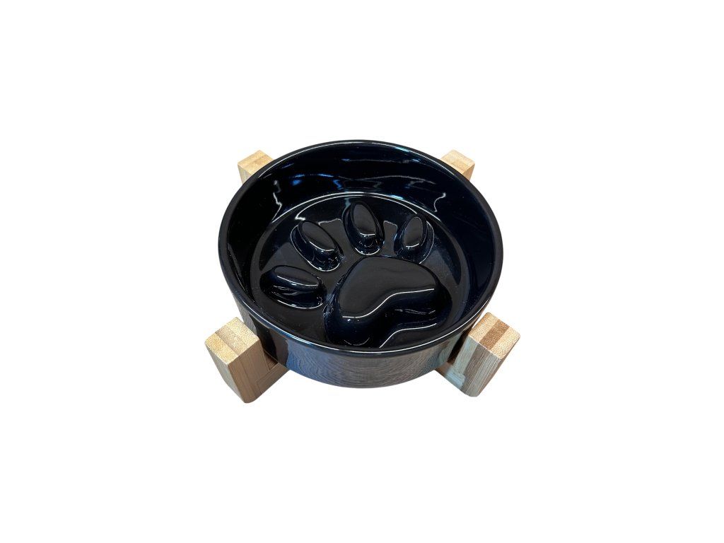 - Pevný dřevěný podstavec udržuje stabilitu a zvedá misku do pohodlné výšky.