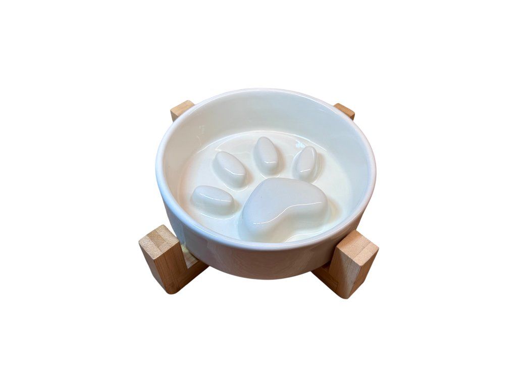 Tato keramická miska Daxie je ideálním řešením pro pejsky, kteří mají tendenci jídlo rychle zhltnout. Vnitřní tvar s plasticky vytvořenou tlapkou nutí psa jíst pomaleji, čímž se snižuje riziko nadýmání a zlepšuje trávení. Navíc krmení trvá déle, takže se z něj stává zábavnější aktivita.