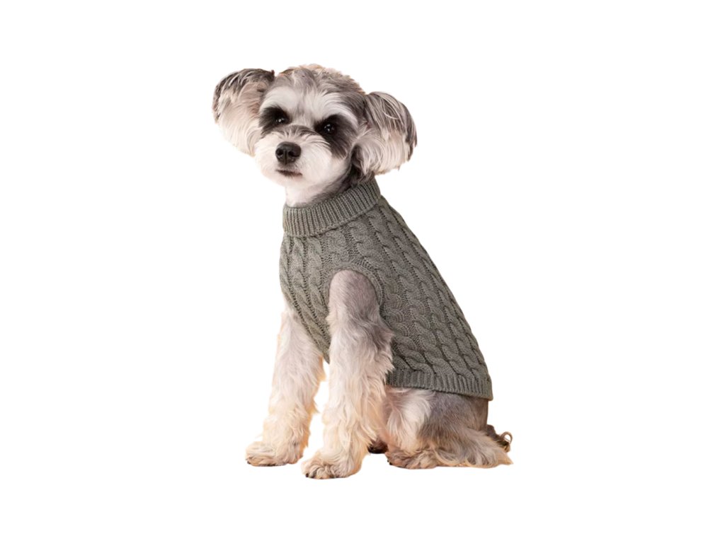 Stylový pletený svetr v khaki barvě, který udrží vašeho psa v teple a pohodlí. Ideální pro podzimní a zimní procházky.